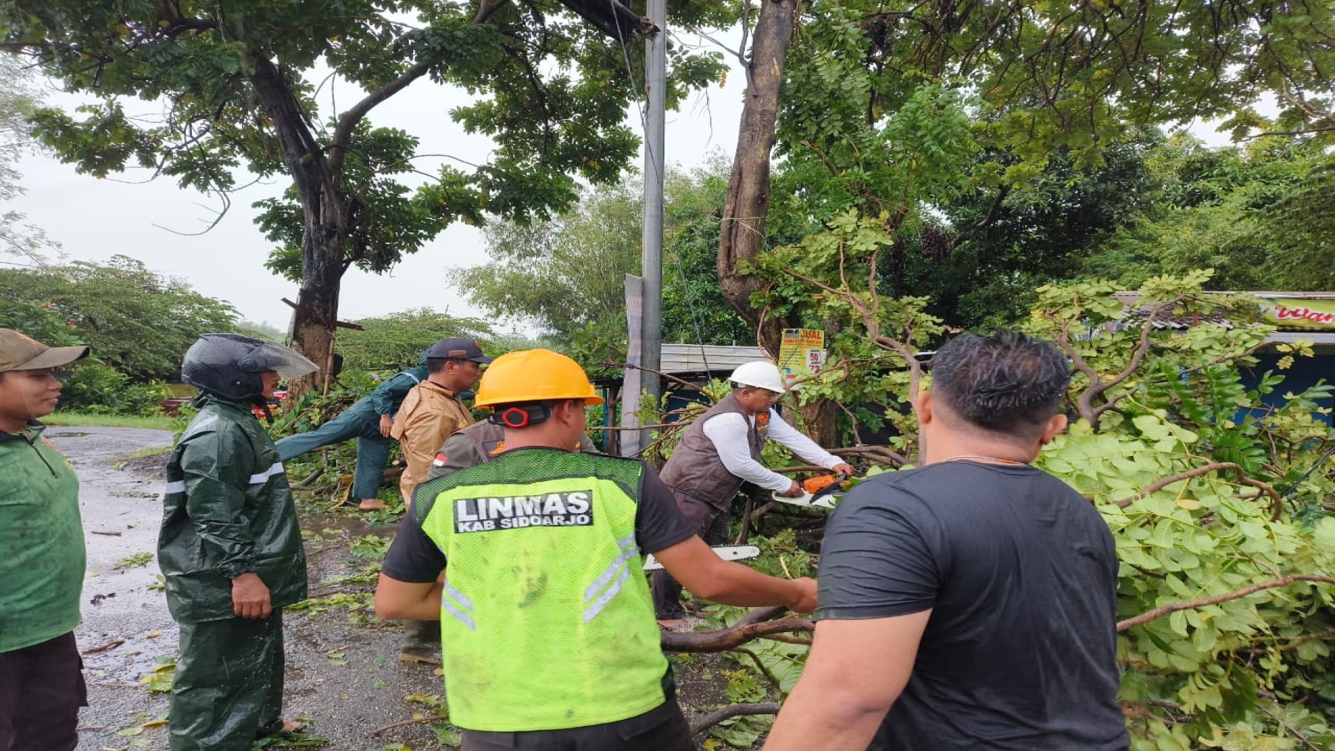 Menindaklanjuti laporan tersebut, petugas LINMAS Satpol PP Kabupaten Sidoarjo segera bergerak ke lokasi untuk melakukan pengecekan dan penanganan di lapangan. Selain di Jalan Arteri Porong, penanganan juga dilakukan di titik lokasi lainnya, yakni di Desa Kedung Solo, Kecamatan Porong. Pada kedua lokasi tersebut, pohon tumbang menghalangi badan jalan sehingga menghambat aktivitas masyarakat dan arus lalu lintas.
